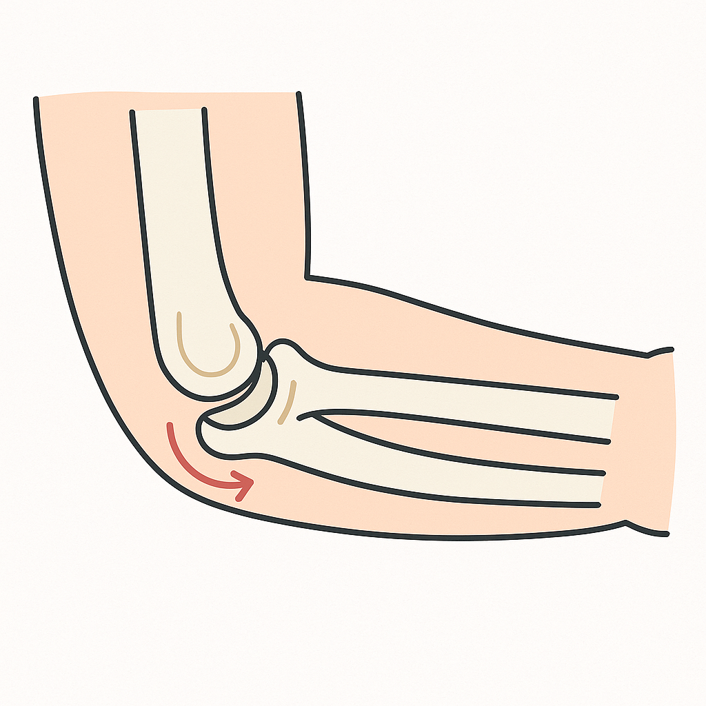 肘内障は「亜脱臼(あだっきゅう)」の一種で、厳密には肘関節の中にある「橈骨頭(とうこつとう)」という骨が、「輪状靭帯(りんじょうじんたい)」から外れてしまった状態です。